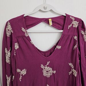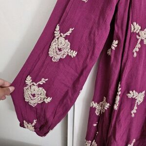 Free People Dress Small Purple Emma Austin Floral Embroidered Tunic Swing Boho