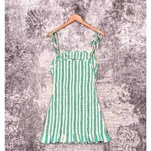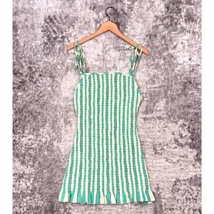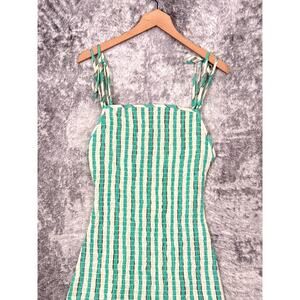 Free People Dress Small Womens Rylee Green Striped Smocked Mini