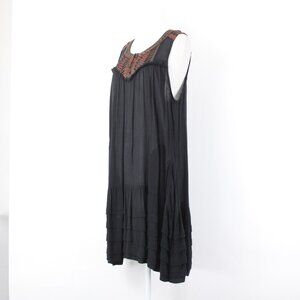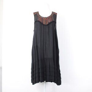 Free People Dress Sz M Black Rust Multicolor Embroidered 100% Rayon Dress