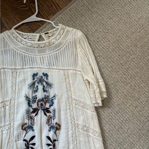 Worn gently only a time or two. Perfect condition. Beautiful stitched dress from Free People. Please message with any questions. Size small.
