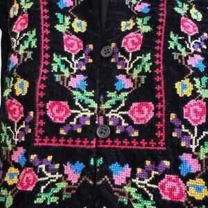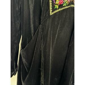 Free People Dress Velvet Cross Stitch Embroidered Long Sleeve Black Multi Sz S