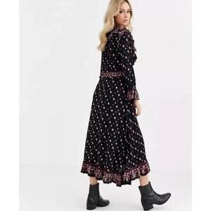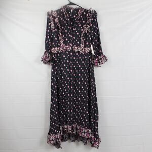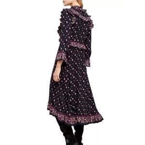 Free People Dress Womens XS Black Combo Floral Ruffle Boho Midi Maxi