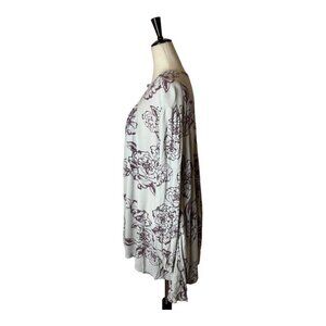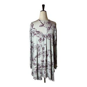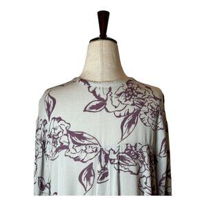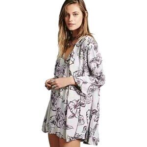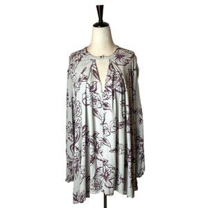 Free People Dress Women Small Gray Purple Floral Swing Flowy Key Hole Tunic Mini