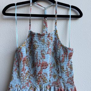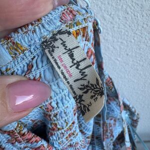 Free People Dress Women XS Blue Heat Wave Floral Smocked Asymmetrical Boho Fairy
