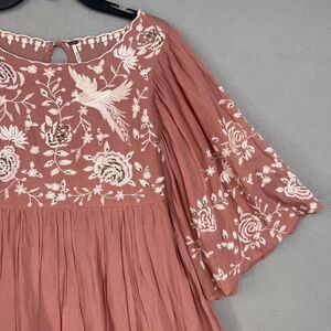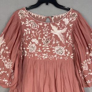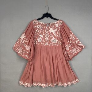 Free People Dress Womens 12 Pink Embroidered Bridget Mini Boho Puff Floral West