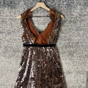 Free People Dress Womens 2 Bronze Sequin V Neck Ruffle Mini Party Cocktail Sash