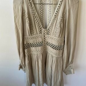 Free People Dress Women's 2 Think I Love You Crochet Macrame Sand Boho
