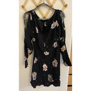 Free People Dress Womens 8 Black Mini Flowers Long Sleeve Cut Out Bohemian