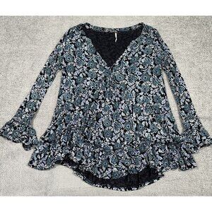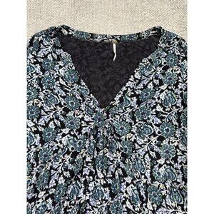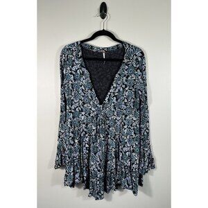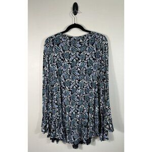 Free People Dress Womens Extra Small Blue Olivia Floral Print Ruffle Tunic Boho