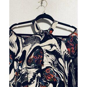 Free People Dress Womens Large Drift Away Black Abstract Cold Shoulder Tunic