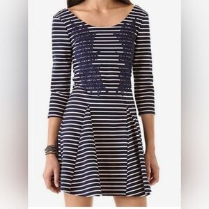 Free People Dress Women’s Nautical Knotty Blue Light Pink Knit Stripe Stretch XS