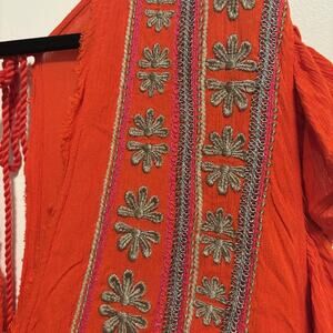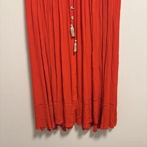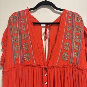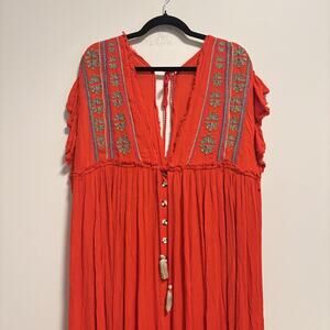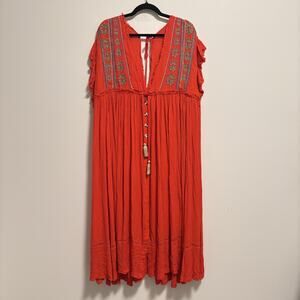 Free People Dress Womens Size Large Orange Embroidered Tassel Maxi Peasant Flowy