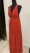 Chic terracotta maxi dress with a deep V-neckline. Flattering silhouette and flowing fabric. Perfect for versatile styling.