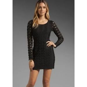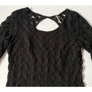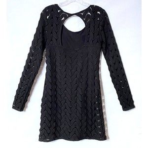 Free People Dress Women's Small Black Crochet Knit Chevron Pattern Bodycon Read