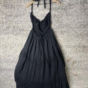 Free People Dress Womens Small Black Halter Tiered Crinkle Cotton Midi Boho