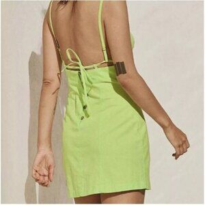 Free People Dress Womens Small Lime Green Little Loca A Line Mini Strappy Back