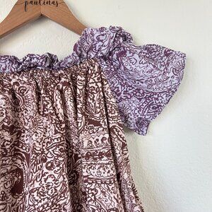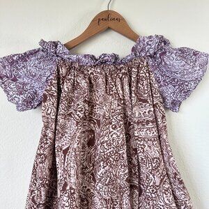 Free People Dress Womens Small Sophie Printed Off The Shoulder Cotton Mini S