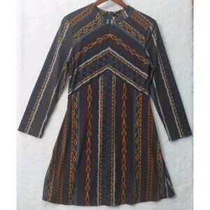 Free People Dress Womens Stella Mini Fall Brown 3/4 Sleeve Boho Mod Medium