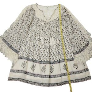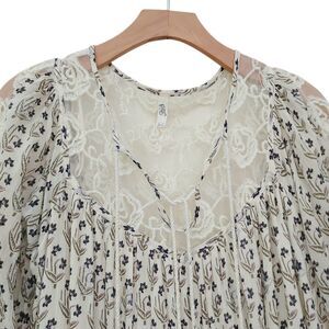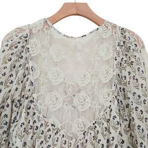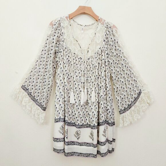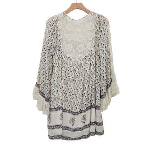 Free People Dress Womens XS Beige Nomad Child Lace Bell Sleeve Floral Bohemian