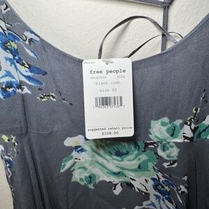 Free People Dress Women's XS Black Combo Faded Bloom Mini Slip Floral Boho NWT
