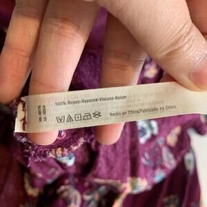 FREE PEOPLE DRESS WOMENS XS PLUM FLORAL ANNKA BORDER SLIP KEYHOLE BACK SWING