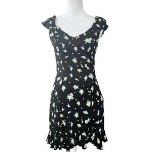 Free People Dress XS Black Floral Backless Mini Short Ruffle Hem