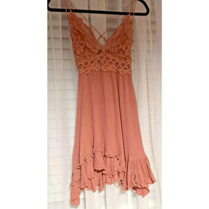 Free People Dress XS Intimately Adella Babydoll Mini Smocked Boho Fairy Lace