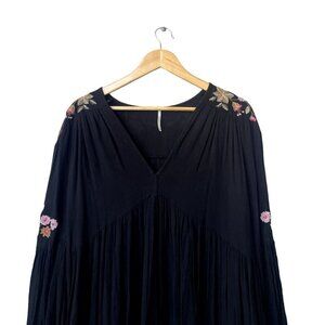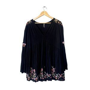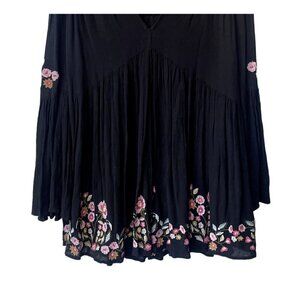 Free People Mini Long Sleeve Size XS Embroidered Boho Floral Tunic Black Dress