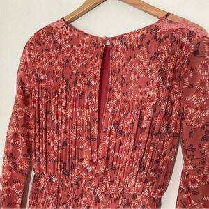 Free People Dress XS Rose Gold Open Water Charlotte Floral Flowy Pleated Boho