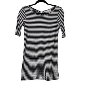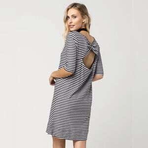 In an oversized, shapeless fit, this cotton striped dress features a cutout in the back, a rounded neck, and short sleeves. This easy style has a slightly stretchy fit.