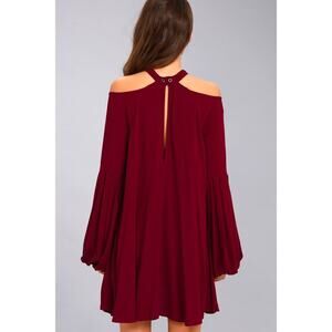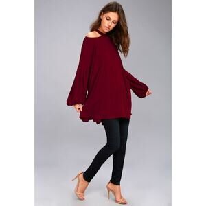 Free People Drift Away Burgundy Cold Shoulder Tunic Top Women’s Size Small