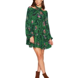 Free People bold printed oversized tunic, high neck with clasp closure and cold shoulder. Wide sleeves Can be worn as dress or top. Worn once, like new. Size Small