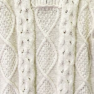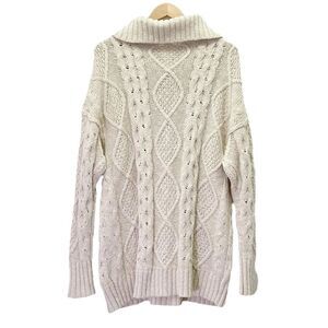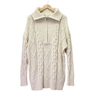 Free People Driftwood Cable Knit Polo in Ivory Size Medium M Fisherman Oversized