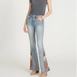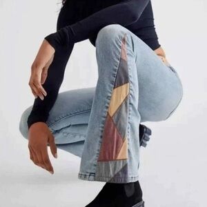 Free People Driftwood Farrah Suede Patchwork Bell Bottoms