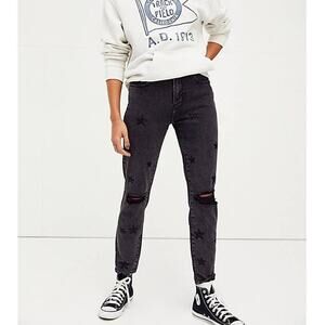 Free People Driftwood Gizelle Jeans In Black Star Destructed Embroidered