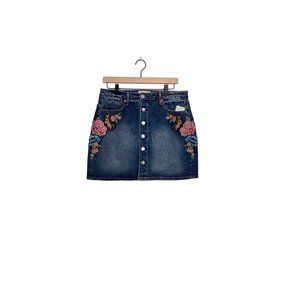Free People Driftwood Leah Denim Floral Mini Skirt Size 29 in Butterfly Effect