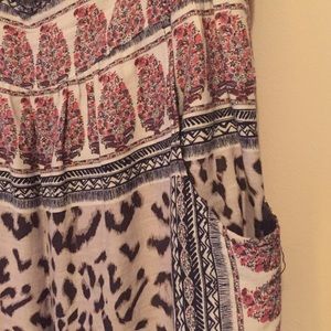 Very cute. Multi-color drop crotch pant. Very comfy. Elastic ankles. Size small. No fabric tag but definitely cotton. Maybe cotton/linen blend. Excellent preowned condition.