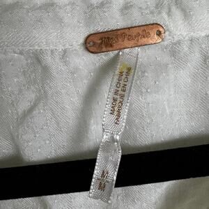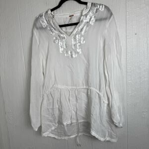 Free People Drop Waist Tie Semi Sheer White Blouse Top Size Medium Embellished