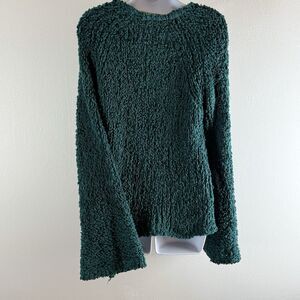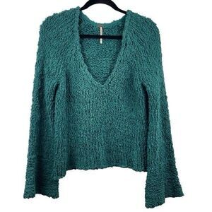 Free People Dune Bell Sleeved Green Oversized Cropped Knit V Neck Sweater S