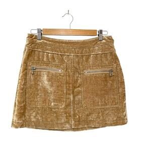 Free People Dust To Dust Crushed Velvet Tan Mini Skirt Festival size 6