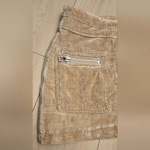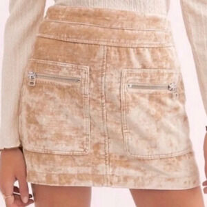 excellent condition, pre-owned crushed velvet mini skirt by free people in creamy tan. gorgeous skirt! perfect for fall!