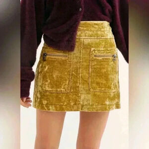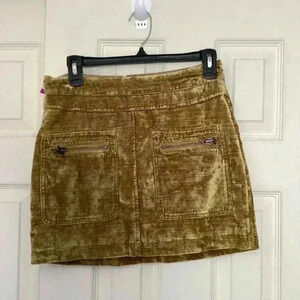 Free People Dust to Dust Crushed Velvet Mini Skirt Gold/Camel Size S/P