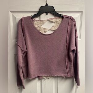 Free People Dusty Lilac Lace Open Back Long Sleeved Top Size Small