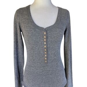 Free People Dylan Thermal Waffle Knit Henley Jumpsuit In Gray Size Medium