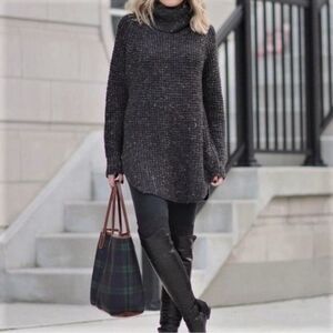 Pre owned Free PeopleDylan Tweed Pullover in Charcoal Combo Turtleneck Sweater in great used condition