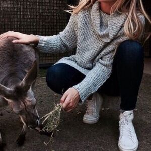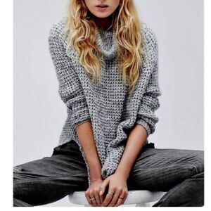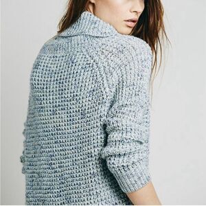 Free People Dylan Tweedy Ice Blue Chunky Turtleneck Cowlneck Sweater