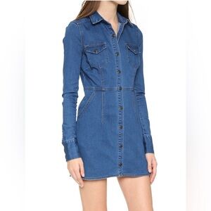 Free People Dynomite Denim Chambray Snap Front Long Sleeve Dress size S Blue
