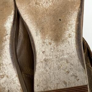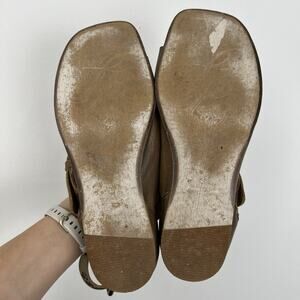 In great preowned condition. The leather has a patina on it, looks like the sandals had been in some water as you can see in photos. Color is a camel brown tan. Has adjustable straps. Made in Spain