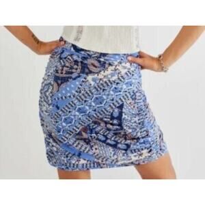 Free People EUC Women's She's Something Else Printed Ruched Skirt Blue Size S