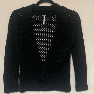 Free People EUC chunky crochet open knit crop cardigan with buttons size L